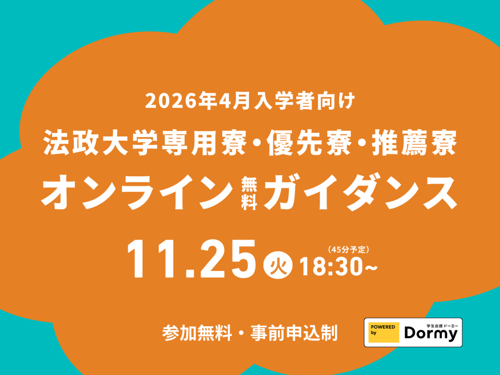【要予約】 法政大学専用寮・優先寮・推薦寮のオンライン無料ガイダンス開催のお知らせ:11月25日(火)18:30より